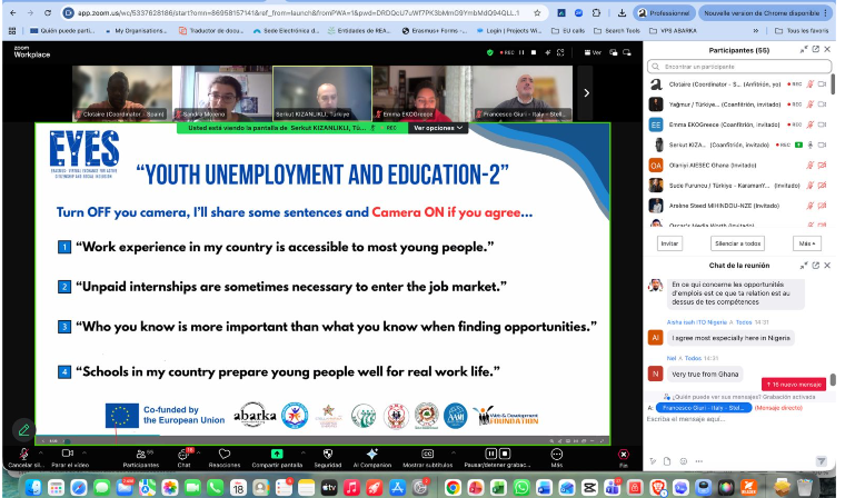 🌍✨ Aujourd’hui s’est tenue la sixième session d’échange virtuel des jeunes – EYES Virtual Exchange, un programme international qui réunit chaque mois huit pays d’Europe et d’Afrique.